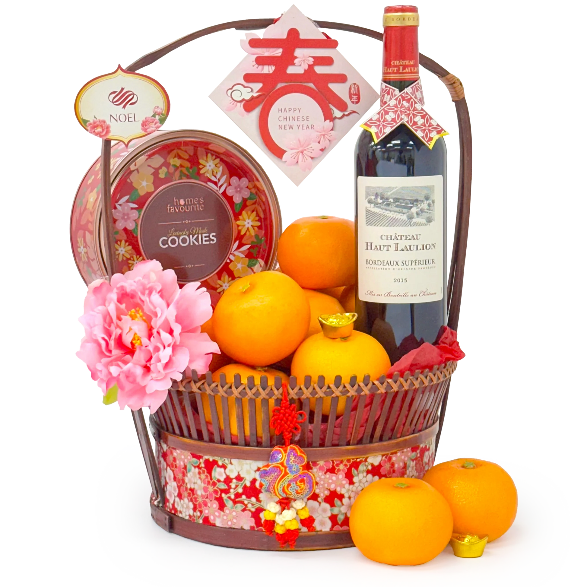 Chinese New Year Fruitful Ventures Gift Hamper With Château Haut Laulion Bordeaux Supérieur Red