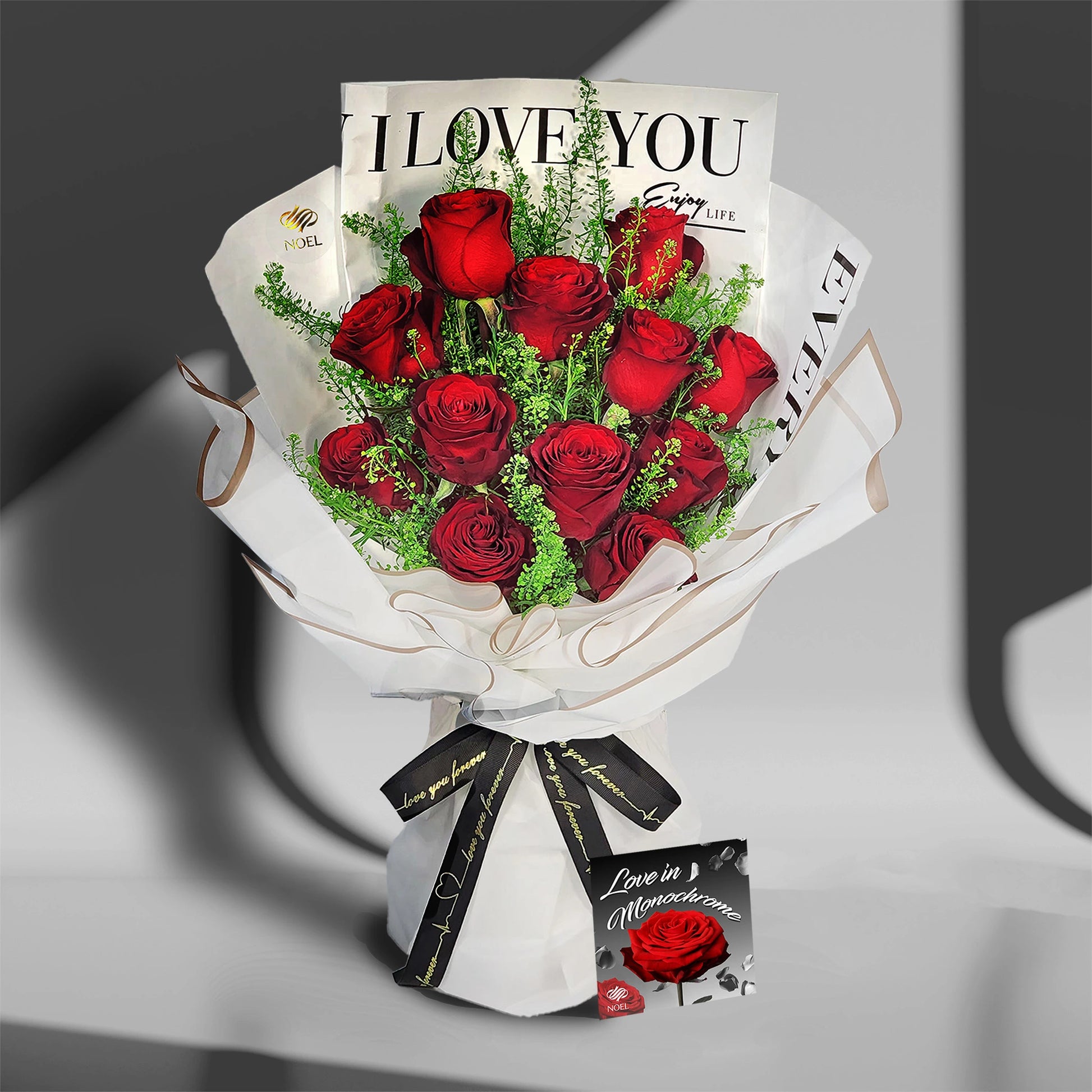 Express your timeless affection with this elegant hand bouquet, featuring 12 classic red roses. Perfect for Valentine’s Day, anniversaries, or any special occasion, this bouquet is a heartfelt way to show love and admiration.