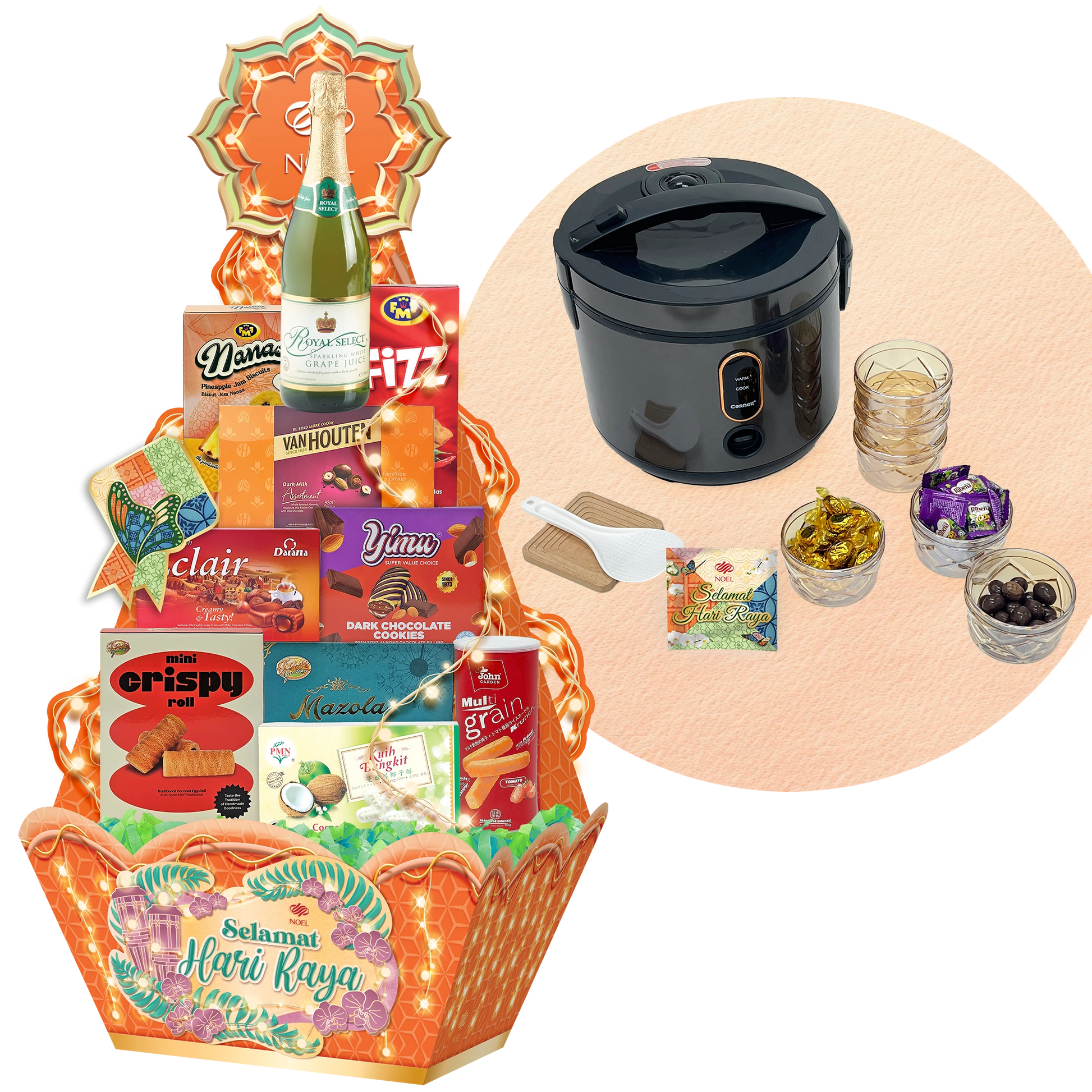 Celebrate Hari Raya with the Timeless Harmony Raya Hamper, thoughtfully curated to bring joy and indulgence to every gathering. Featuring sparkling juice, traditional kuih, cookies, chocolates, and savory snacks, this hamper is perfect for families, friends, and corporate gifting.