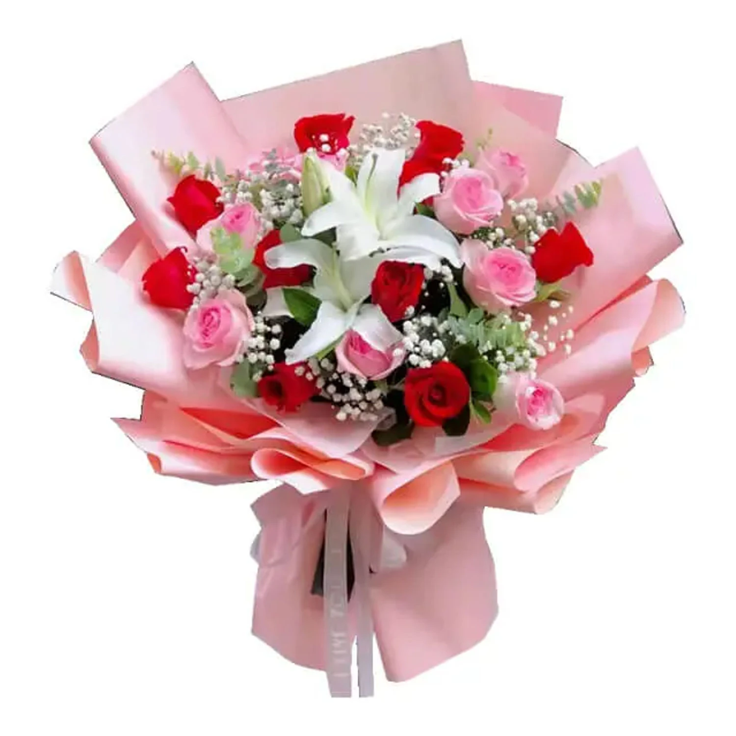 - Complete with flower decorations of 6 Peach Roses, 4 Gerberas, Carnations, Fillers